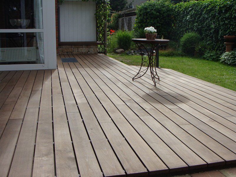 Durch eine Spezialbehandlung mit Wärme und Wasser wird heimisches Laubholz so in seiner Struktur verändert, dass es mindestens genauso dauerhaft, feuchtigkeitsresistent und dimensionsstabil wird wie Tropenholz. Oft übertreffen die Eigenschaften dann sogar die von Tropenhölzern. Weil das Rohmaterial aus heimischen Laubwäldern stammt, fallen außerdem keine teuren Transportkosten aus Übersee an.Somit bieten wir Ihnen eine kostengünstige Alternative an.